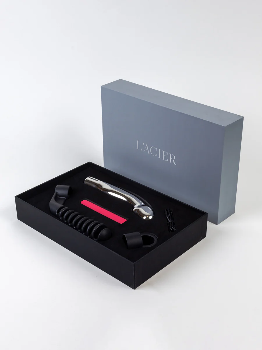L'acier introduces Capo the world's first metal vibrating dildo. The design is purposely shaped for vaginal pleasure with its perfect shape and weighted metal dildo feel. The powerful steel vibrator come in a gift box set includes that includes a 316 stainless steel dildo, polished and machined, ultra-strong bullet vibe which fits inside the metal dildo, an easy reach handle, anal retention cap, and charger for magnetic USB charging. These luxury adult products are shipped in an artful gift box intended for properly storing your sex toy.